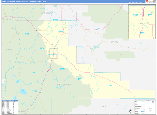 Bend Redmond Metro Area, OR Zip Code Map Premium MarketMAPS